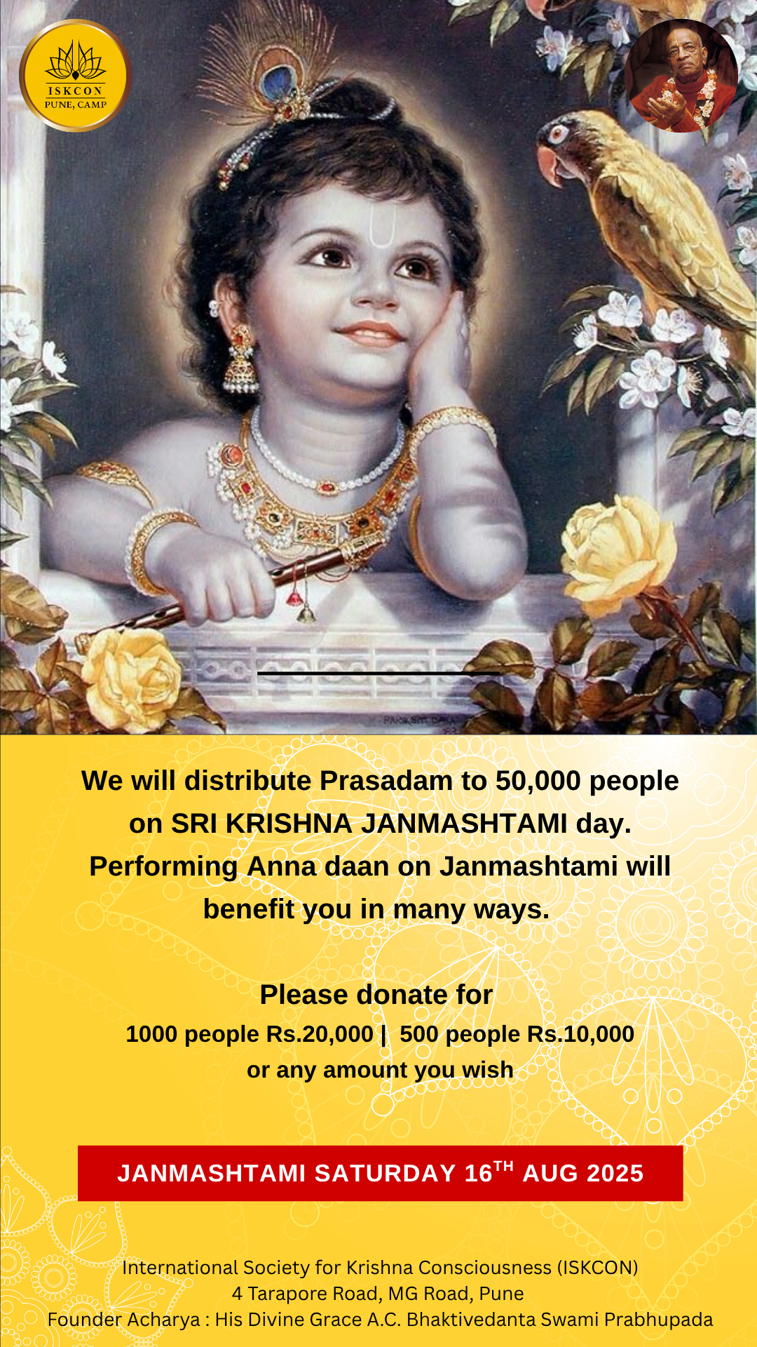 On Janmashtami, anna-daan isn’t just charity — it’s an offering that reaches Krishna’s heart. 💛<insert_your_custom_donation_link_here>